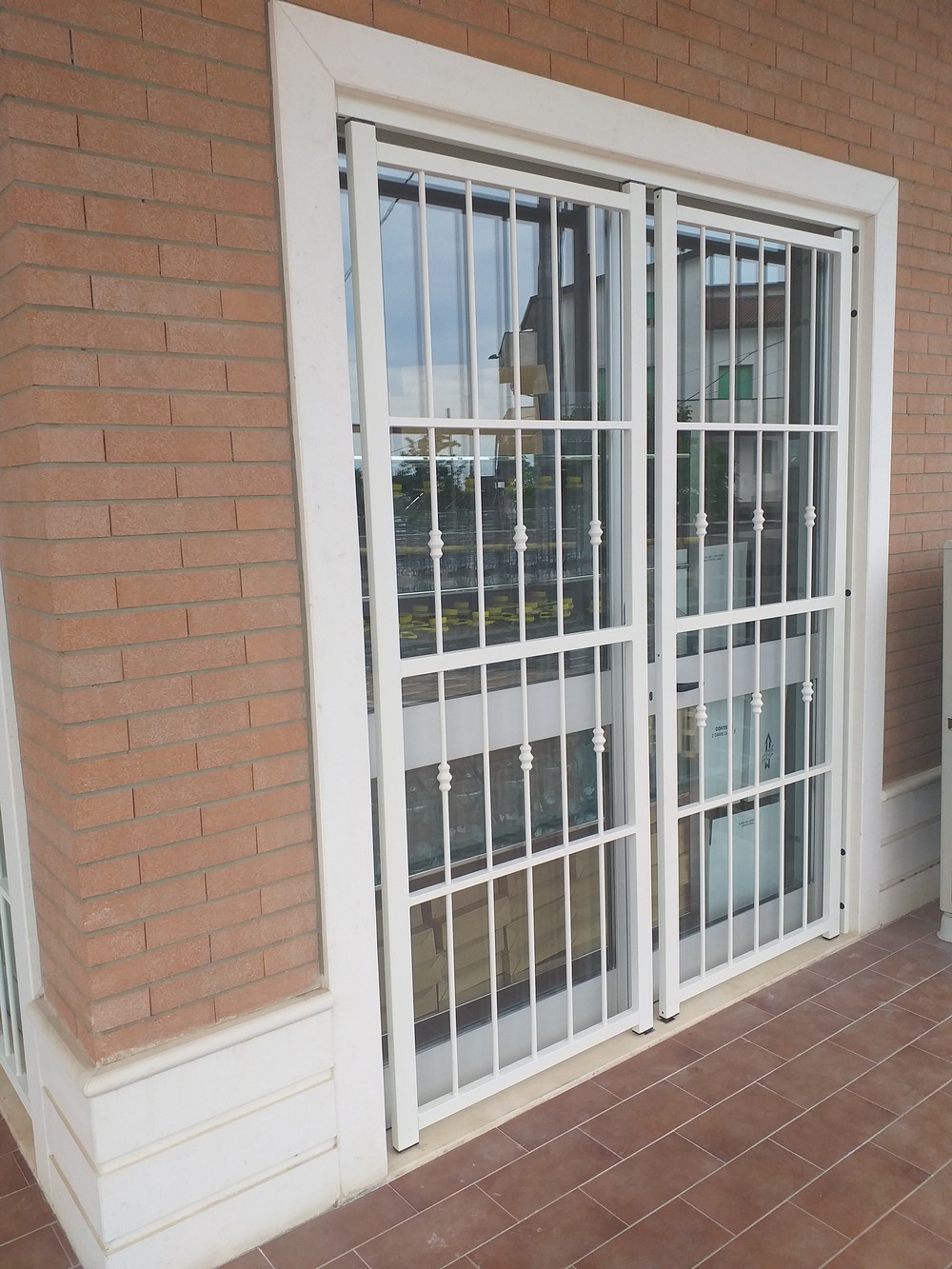 – GRATE DI SICUREZZA , apribili con snodo , brevettate , cerrtificate , adattabili a qualsiasi tipo di vano in sintonia con il contesto architettonico .